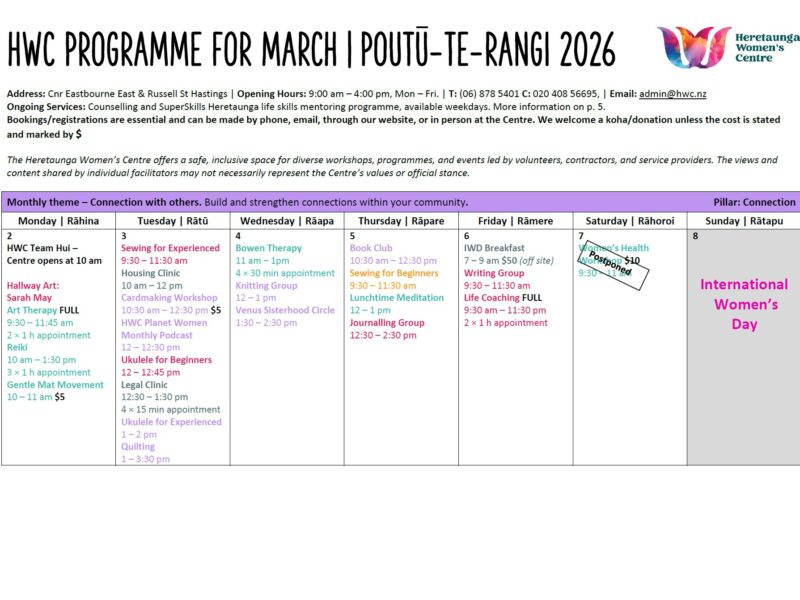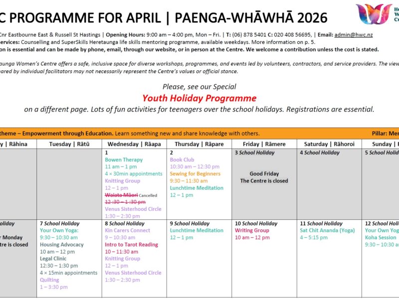 At the Heretaunga Women’s Centre, we have a long history of supporting the women of Hawke’s Bay. Over the past 100 years, we have refined our kaupapa, defined our values, and worked hard towards our purpose of enhancing and advocating for the wellbeing and empowerment of wāhine in our community.
